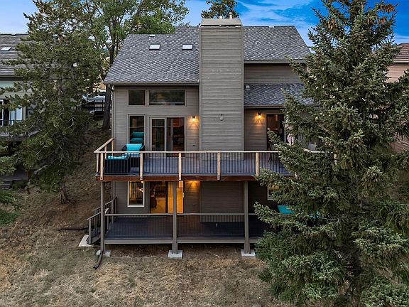 Nestled amidst the serene beauty of Genesee Village, this exquisite three-bedroom, three-bathroom residence offers a harmonious blend of modern elegance, extensive updates and natural tranquility. Boasting stunning mountain views that captivate from every angle, this home provides a peaceful mountain escape, yet is just 25 minutes from downtown Denver. Recently and extensively updated, this property features new windows, a gorgeous spa-like primary bathroom, fresh paint, the removal of popcorn ceilings, new whole-home humidifier and air scrubber systems, and more. Step inside to discover a spacious, light-filled interior oriented towards the stunning views. The main floor living room, with vaulted ceilings and walls of windows flows effortlessly onto the large upper deck, creating the perfect indoor/outdoor living area. The kitchen is bright and airy, with ample counter and cabinet space, while the dining area and living room fireplace create perfect spaces to relax with friends or family. Upstairs, a large loft area is an ideal home office or study. The primary suite boasts a second fireplace, a large walk-in closet, and the amazing primary bath, with dual vanities and an oversize walk-in shower. The lower level provides two additional bedrooms, a full bathroom and a second spacious family room, completed by the third fireplace. Step outside onto the covered lower deck and enjoy the quiet surroundings, while watching for the numerous deer, elk and other wildlife. Or easily enjoy the nearby community pool, tennis courts, pond and trails. All part of this serene mountain escape! See 23860geneseevillageroad.com for more photos, 3D, etc.