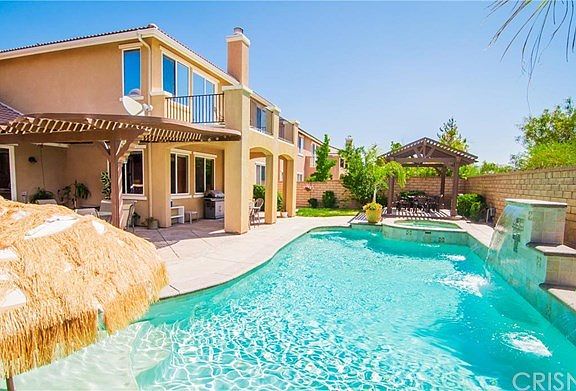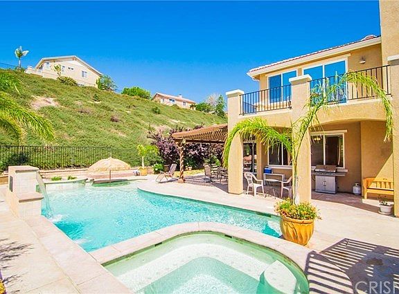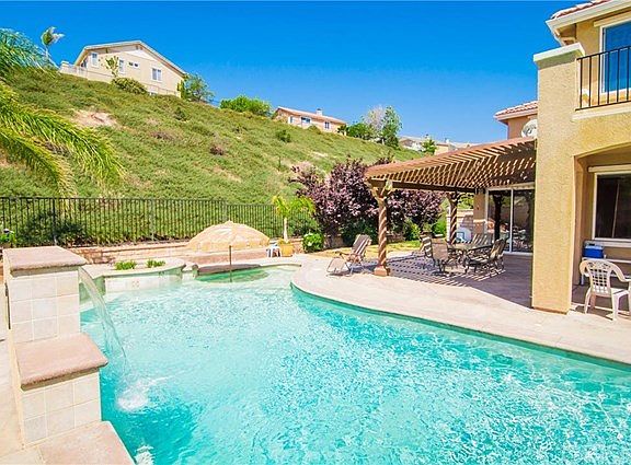 Newer Valencia 5 bedroom + loft pool home! Great location at the end of the cul-de-sac on the view side of the street. Entertainer's yard with beach entry pool/spa, exceptional stamped concrete hardscape, patio cover & more. Open floor plan with 4 bedrooms + loft + tech center upstairs with a full bedroom & bathroom downstairs. All bedrooms are spacious, the master closet is especially good-sized & the deck off the master bedroom offers views of Tesoro. Oversized Chef's kitchen with 2 granite islands - great for family get-togethers. Quiet location, pool/spa, newer construction, 5 bedrooms + loft - this home has it all!