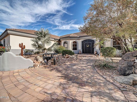 This PERSONAL PARADISE in Peoria is CLOSE to EXCELLENT SCHOOLS, SHOPPING, FREEWAYS, and ENTERTAINMENT but STILL TUCKED AWAY in a PRIVATE and PEACEFUL LOCATION*KITCHEN has GRANITE at ABUNDANT COUNTER SPACE, neutral UPGRADED CABINETS, ISLAND, bay window, and EXTRA LARGE WALK-IN PANTRY*GREAT ROOM has FIREPLACE*FRONT ROOM can be office or sitting room*GREAT STORAGE*GUEST SUITE has FULL BATH and separate OUTDOOR EXIT*EXPANSIVE OWNER SUITE has SITTING ROOM (used as office) and FANTASIC BATH with WALK IN SHOWER and TUB with JETS*RASTA (IFC) BLOCK CONSTRUCTION*NEWER ROOF, SHUTTERS, SOFT WATER, GARAGE CABINETS and the list goes on*OASIS BACKYARD has FABULOUS DEEP PATIO, SOOTHING POOL, TURF, MOUNTAIN VIEWS, and room for RV PARKING*Come by and see why YOU WILL WANT TO CALL THIS PLACE YOUR ''HOME''
