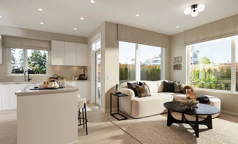 Welcome home to Polygon's Halo, situated between serene beaches and vibrant urban amenities. This modern 662 sq.ft. 1 bedroom home features overheight ceilings and laminate wood flooring throughout all living and sleeping spaces. The well-equipped kitchen boats sleek stainless steel appliances, including a gas cooktop and engineered stone countertops. AC included! Plus, enjoy exclusive access to over 9,800 square feet of combined indoor and outdoor amenities, including a fitness studio and a lounge. Completion is estimated for Summer 2026. Visit our sales office at 15231 20th Avenue in South Surrey. Open by appointment.