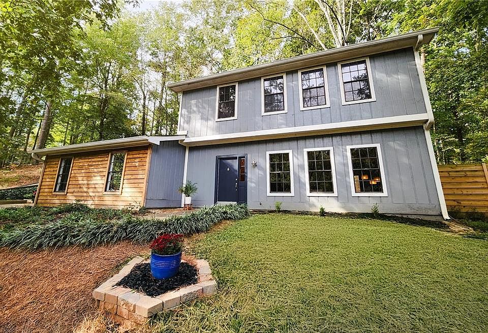 Cool House! Mid-century touches add so much to this completely renovated home is quiet Marietta neighborhood! Brand new hardwood flooring throughout! Designer paint, wood accent wall, and decorator tile fireplace surround are just a few of the unique features that you will love about this home! Kitchen has new cabinets, exotic granite counter tops, stainless steel appliances and recessed lighting! Each bathroom is updated with new vanities and tile flooring and showers. Perfectly situated on a cul-de-sac, the setting feels like you are in the mountains yet you are so close to shopping, schools, parks, highways, restaurants and more!. Lot is over an acre in size, wooded with a level playing area in back and a real tree house too! This elevated gem truly has no stone unturned and is move in ready!