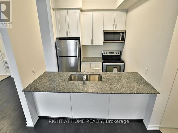 Beautifully upgraded ground floor unit with rare direct access from your private attached garage - no stairs, total convenience! Enjoy a bright and airy open-concept layout with soaring 10' ceilings, oversized windows, and stylish laminate floors throughout (no carpet!). Featuring 2 spacious bedrooms, 2 full bathrooms, a sleek modern kitchen with granite counters, island with breakfast bar, and stainless steel appliances, plus in-suite laundry. Comes with 2 parking spots (garage + driveway) and a large storage locker. Tucked away on a quiet interior street in a top-rated school zone, just steps to transit and minutes to major highways. A must-see! Tenant pays all utilities and must provide tenant insurance.