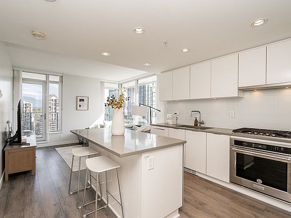 Experience urban sophistication at Fulton House, located in the heart of Brentwood. This stunning 2-bedroom + den, 2-bathroom residence soars high on the 28th floor, offering breathtaking panoramic views of the city and mountains. The open-concept layout features a stylish kitchen with high-end integrated appliances, gas cooktop, quartz countertops, and sleek cabinetry. The spacious primary bedroom includes a spa-inspired ensuite and generous closet space. Enjoy resort-style amenities including an outdoor pool, hot tub, sauna, fitness centre, yoga studio, amenities room and beautifully landscaped gardens. Just steps to Brentwood Town Centre, SkyTrain, Whole Foods, and restaurants, this home combines modern luxury with unbeatable convenience. Includes 1 parking and 1 storage locker.