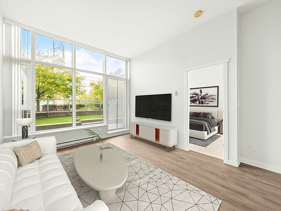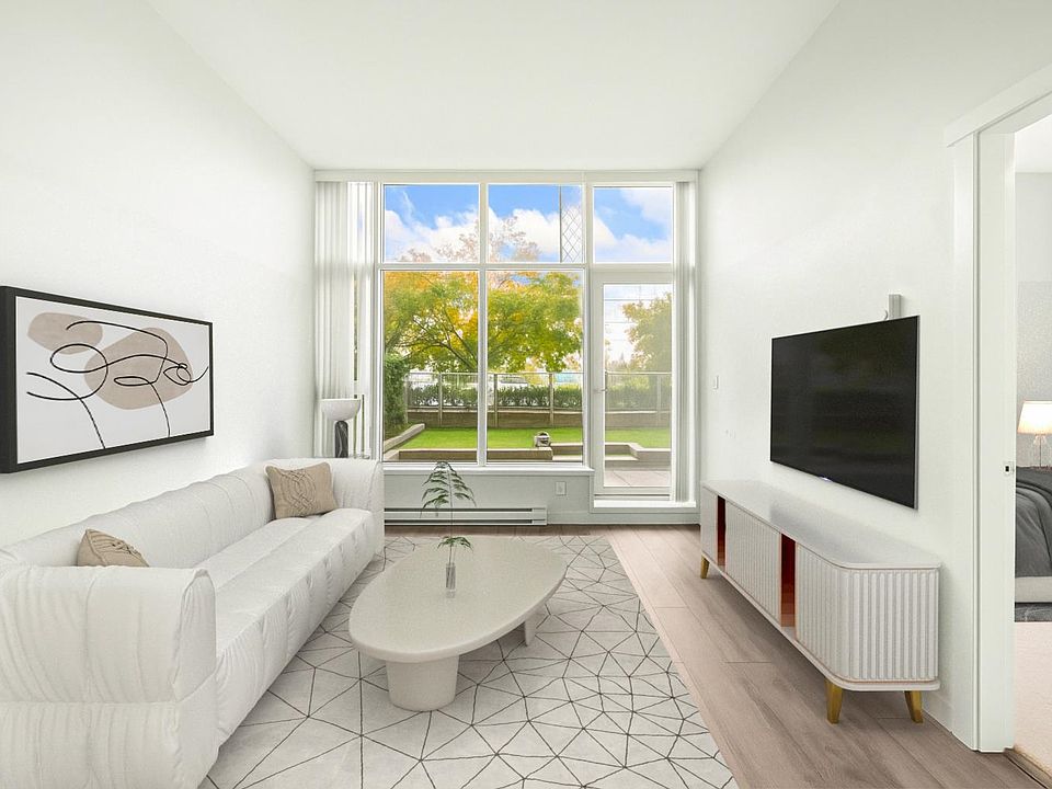 Welcome to "Fulton House" by Polygon, this spacious south-facing 1-bedroom unit features a practical open floorplan with floor to ceiling windows and an expansive 149SF private balcony and yard. One EXTRA foot of ceiling height compared to other units in the building. Sleek modern kitchen with a large island, Miele appliances, and a wine fridge. Fulton House amenities include a fitness centre, yoga studio, outdoor pool, hot tub, sauna, and lounge. Steps to SkyTrain, Brentwood Mall, dining, and more. Don't miss this opportunity to own one of the BEST VALUE condos in the Brentwood corridor. A perfect fit for dog lovers, retirees, investors, and anyone seeking comfort and convenience. 1 Parking + 1 Storage Locker Included.