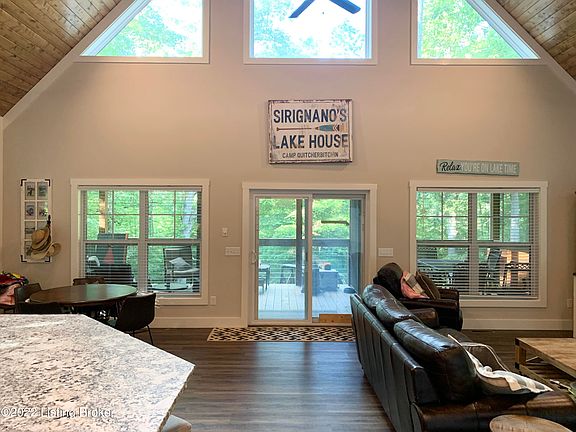 Lakefront 3 year old home located on Nolin Lake! This home features 3 bedrooms, 2 full bathrooms, large vaulted great room, open kitchen and spacious dining area. Outside is a screened and open deck for entertaining. A dock slip included with COE approval.