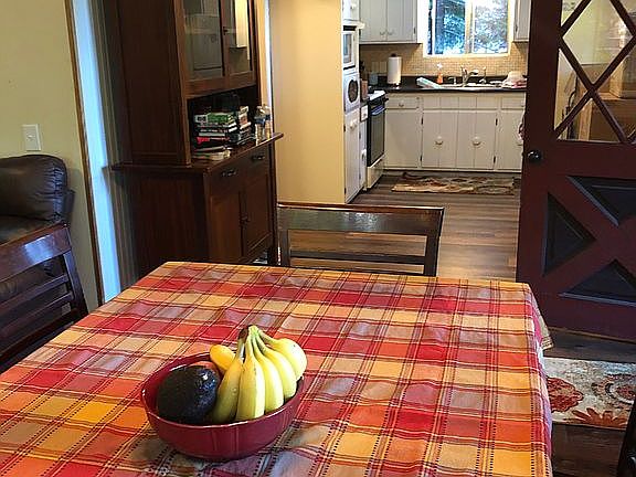 3 bd/2 bth, family room, and a garage. Nestled in the dogwood trees surrounded by decks, yard, and gardens sits this 2 story home on a level lot. The main living area and the family room look out into the gardens and onto the decks. 2 fire places, one covers the walls to the ceiling with lots of rocks, knotty pine cabinets give this home a wonderful lodgy, cabin feel.