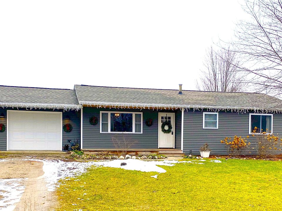 This nicely updated ranch style home sits on 2 acres with an attached garage, beautiful gardens in the summer, a nice storage shed, and an awesome deck for outdoor entertaining. Walking in the home you will find freshly painted walls and new flooring. The main level features 3 bedrooms, 1 spacious bathroom, kitchen, and living room. Head to the basement and you will find an additional living area, a mancave with pine tongue and groove, laundry, and lots of additional storage space. Some other updates include new windows, siding, roof, water heater. Call Listing agent today for your private showing.