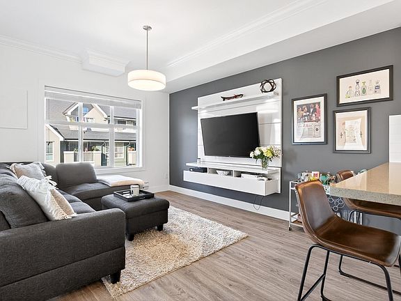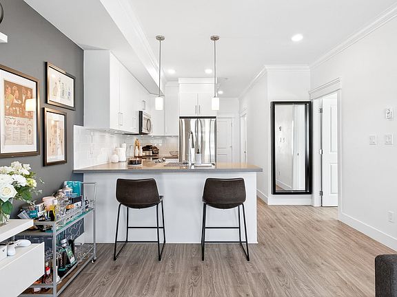 Bright & spacious 1-bedroom plus large den home in an unbeatable Port Coquitlam location. The den is generously sized & can easily function as a 2nd bedroom, making this a versatile 2-bedroom, 2-bathroom layout with 9' ceiling. This corner unit offers exceptional natural light with lots of windows & a nicely sized covered deck for outdoor enjoyment. Only 4 years old, the home features laminate flooring throughout, two full 4-piece bathrooms & a thoughtfully designed kitchen with quartz countertops, an undermount sink, ample cabinet space & stainless steel appliances. Located within walking distance to Gates Park, the Port Coquitlam Rec Centre, shops, restaurants, transit, and all that downtown Port Coquitlam has to offer. 1 parking, 1 locker, 1 pet. Open house Oct 26, Sunday 2:30-4:00pm.