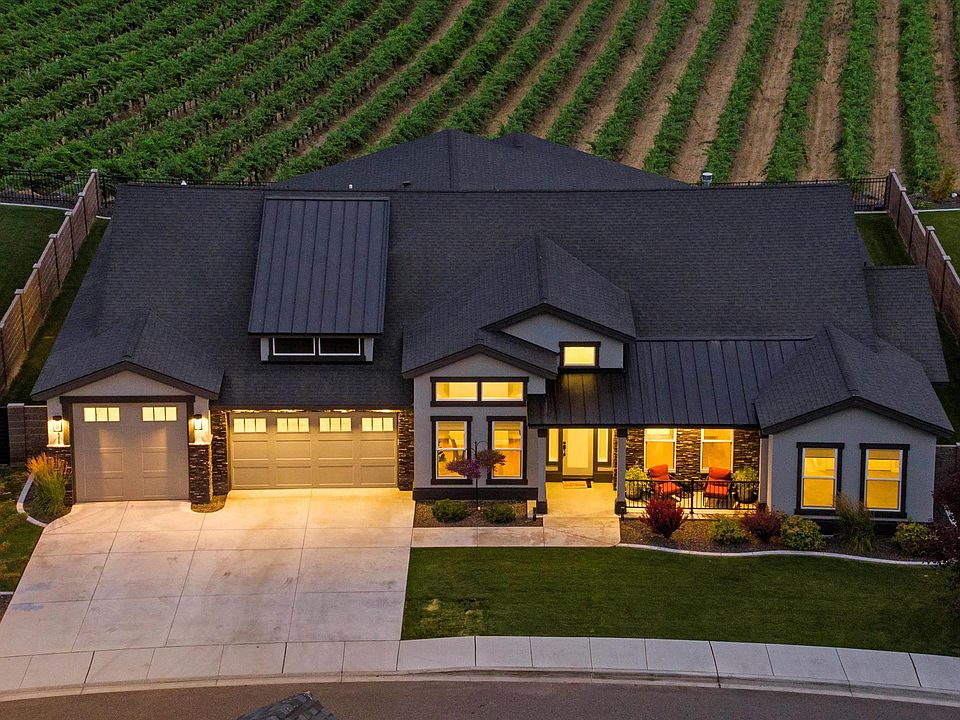 MLS# 285385 Discover elevated living in Westcliffe Heights - where breathtaking views, thoughtful design, and refined finishes come together to create a home that truly inspires. Step through the 8' entry door into a sun-filled haven with elegant details at every turn. The great room is warm and inviting with wood-wrapped windows and custom built-ins flanking the tile fireplace. A coffered ceiling and built-in hutch add both style and function to the formal dining area. The chef’s kitchen is a standout, featuring an oversized island with quartz counters, KitchenAid appliances, built-in oven/microwave, gas cooktop, ample cabinetry with LED under-cabinet lighting, and a walk-through pantry. Start your day with stunning views from the primary suite, then unwind in the luxury hotel-inspired ensuite with a free-standing soaking tub, walk-in tile shower, dual vanities, and custom closet. An additional junior suite with built-in murphy bed and private bath makes an ideal guest space, while two jack-and-jill bedrooms with shared full bath offer the perfect setup for residents. The spacious fifth bedroom with hardwood floors doubles beautifully as a bonus room. A dedicated front office with soaring ceilings, bright windows, and custom built-ins brings both form and function to this home's flexible layout. Step outside to unobstructed views over vineyards and the sweeping Badger Canyon hills. The expansive covered patio and fully fenced yard - featuring a block wall and wrought iron accents - offer privacy and style, elevating your outdoor entertaining experience. The finished 3-car garage includes a 29' deep RV bay with a 10' door - perfect for storage, workshop or toys. Smart features like a Kevo lock, Ecobee thermostat, Ring doorbell, and smart garage opener add modern convenience. Just steps from private community amenities, you’ll be able to choose your daily vibe with pool, clubhouse, and walking paths right outside your door. Don’t just imagine the lifestyle - step into it. This exceptional property is ready to welcome you home.