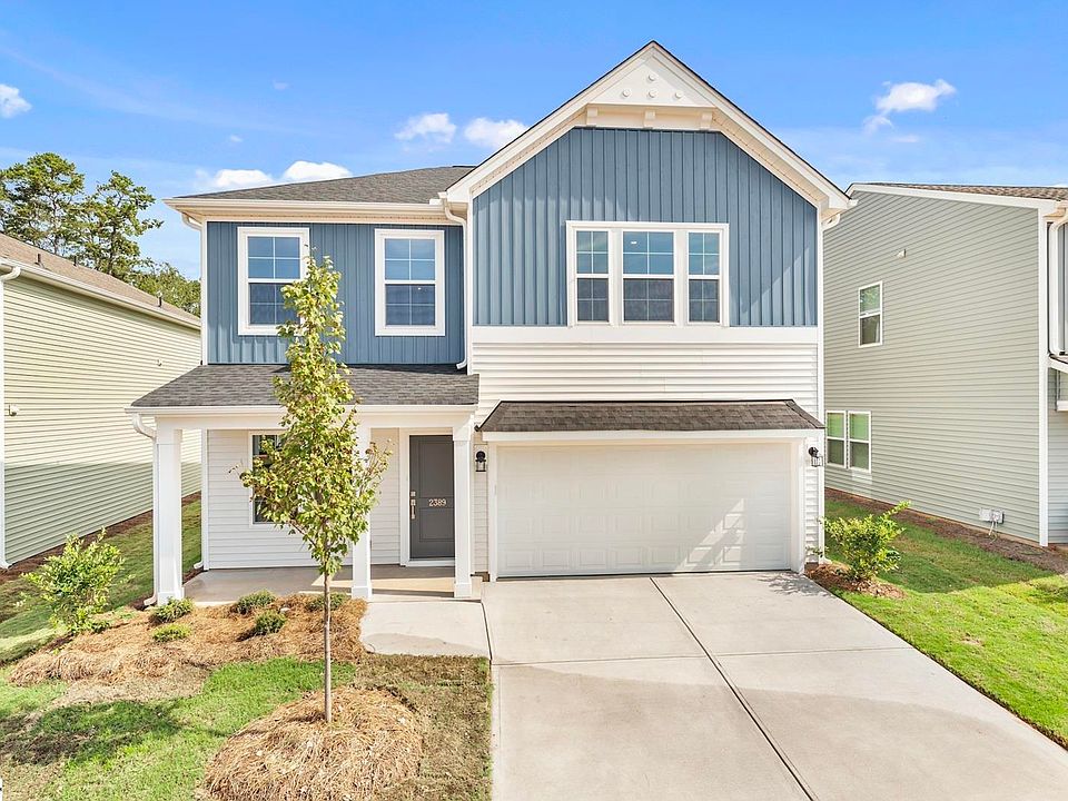 Introducing The Guilford – a blend of comfort and practicality! As you step inside, you're greeted by a versatile flex space, perfect for a cozy home office or formal dining area. Journey further to discover a contemporary kitchen, boasting stainless steel appliances and quartz countertops, accompanied by a spacious walk-in pantry leading to the inviting great room, accentuated by a warming fireplace. On the upper level, you'll appreciate the thoughtfully placed laundry room and full bathroom near the three secondary bedrooms. Retreat to the primary suite, complete with an en-suite bathroom and dual walk-in closets – for linens and attire. To top it off, a loft space awaits your personal touch. The Guilford is designed with modern living in mind! Enjoy the evenings off your back covered porch, just a few steps away from all the amenities that Mayfair Village.