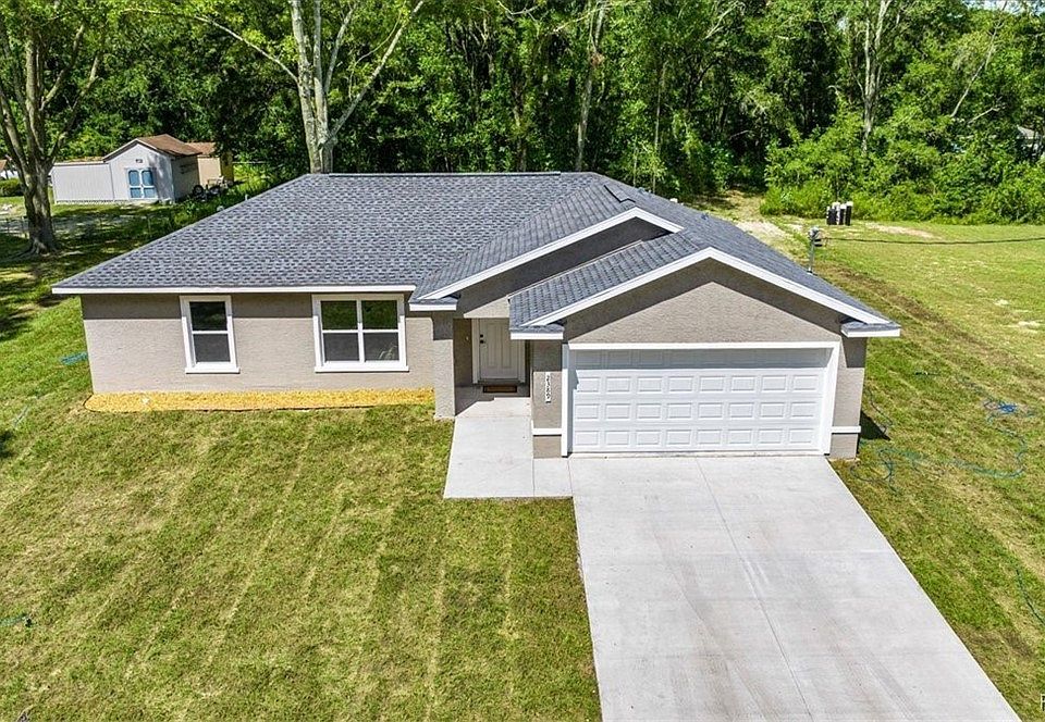 Home is ready for its FIRST OWNERS! This neighborhood is just off the beaten path and conveniently located close to Highway 326, Highway 441 and just a short drive to I-75! This home has all the modern features and upgrades you are looking for including modern tile floors throughout, granite counters, stylish wood shaker cabinets, counter height island, contemporary lighting and large laundry room. The primary bedroom features a large walk in closet, 5 ft vanity and tiled walk in shower. This home has an open floor plan with high ceilings. You are sure to love the home and the location! With a 1/2 an acre you have plenty of room for a pool, garden, shop or outdoor kitchen. Short drive to WEC, Downtown Ocala and all the conveniences you need.