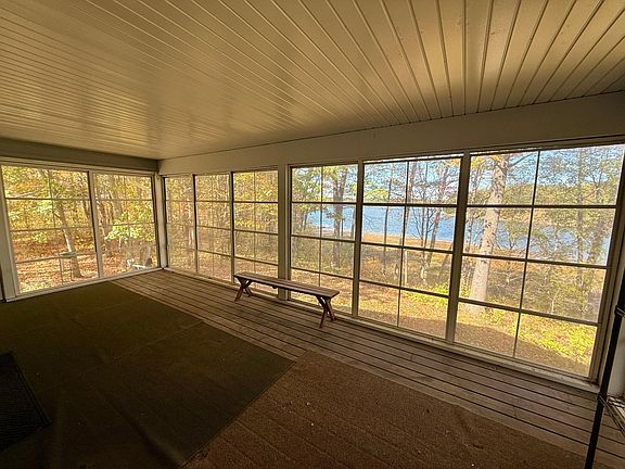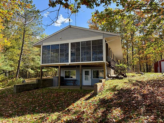 Plummer Lake Opportunity! Tucked at the end of the road, this rare 5.5-acre retreat offers ultimate privacy, wooded seclusion, and incredible sand frontage. It includes an extra vacant parcel for added privacy or future resale. A private boat landing gives you direct access to the lake. The home has a quirky but functional layout with one bedroom and two kitchens—easily modified by turning the lower kitchen into a lakeside bedroom. A newer 2-bedroom septic is already in place. Enjoy expansive views from the large three-season room. Two pole barns and a shed provide ample storage. Focus on what you can't change: great privacy, private landing, gentle slope, sandy shoreline, and stunning lake views. With some thoughtful updates, this property can become your ideal Northwoods escape.
