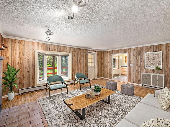 Welcome to this inviting ranch-style retreat set on .70 acres in the heart of Indian Hills. Next to towering ponderosa pines, this home blends mountain charm with modern comfort. Inside, you’ll find 3 bedrooms, 2 baths, plus an office and a versatile workout/flex room that adapts to your lifestyle. The open Great Room is the true centerpiece, featuring a cozy gas fireplace with a stone surround and a bay window that brings in natural light, creating a warm and welcoming space. The kitchen flows easily into this gathering area, perfect for everyday living and entertaining. Step outside to enjoy the best of Colorado living. A spacious L-shaped deck overlooks a fully fenced yard, offering room for pets to roam, for gardening, or simply for soaking up the peace of your private setting. A small water feature near the deck adds a touch of tranquility, making it the perfect spot for morning coffee or to unwind at the end of the day. The property also includes a two-car detached garage and a storage shed, giving you plenty of room for vehicles, gear, and tools. Living in Indian Hills offers a unique lifestyle—quiet mountain surroundings with easy access to recreation, trails, and wildlife, yet close enough to Evergreen, Morrison, and Denver for shopping, dining, and commuting. Whether you’re working from your private office, gathering around the fire on crisp evenings, or hosting friends for summer barbecues under the trees, this home delivers the best of both worlds: mountain serenity with modern convenience. Discover why this is the perfect place to call HOME!