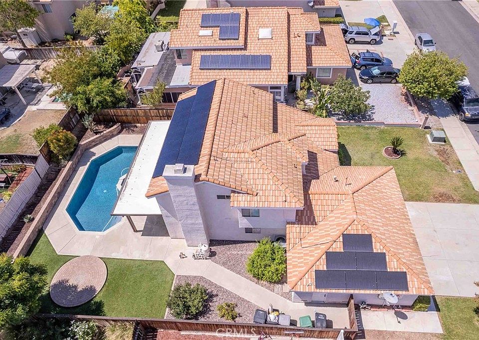 TURN KEY!!! Lovely POOL HOME with 4 bedroom and 2.5 Bathrooms. Cathedral ceilings in Living Room & Dining Room. Huge Master with large walk-in closet and spacious Master Bath. Down Stairs Bedroom Kitchen is upgraded with Stainless Steel Gourmet Stove and features a counter for eating. Excellent neighborhood with great schools. LOW PROPERTY TAXES-NO HOA SOLAR SOLAR SOLAR fully paid for $53,000. Wow! 23 panels. His most recent electricity bill was $8. Installed June 2022.