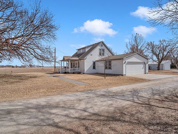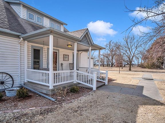 Nestled on the Historic Chisholm trail this 4-bedroom 2-bathroom farmhouse provides your own country paradise. The sprawling 7 acres feature a 4-car heated/ac shop, attached 2 car garage, decorate livestock pen, raised garden beds and brome field. 1/4 acre of the property has been converted to a wildflower field housing native Kansas flowers. The renovated main floor gives an open airy floorplan with dark hardwood floors. Galley kitchen with granite counter tops open to roomy dining room. Cutest mud room/ laundry room off the back with wash sink. All appliances stay with the home! Main floor master bedroom. Upstairs you'll find a loft and 2 additional bedrooms. The finished basement has a family room, full bath, sewing/craft room and bedroom with outside access to stairs. Never worry about losing electricity as the home has a whole house generator if needed. You don't want to miss this charming country property located 1 mile from top rated Goessel schools!