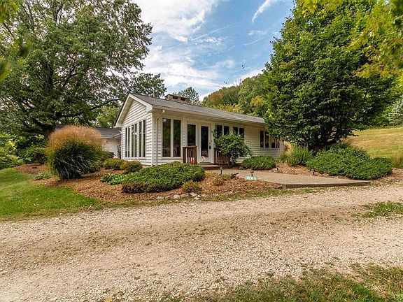 Just outside the beautiful river town of Clarksville is this picturesque 4 bedroom, 2 bathroom home. The 2100 square foot ranch offers quartz countertops, bamboo floors and stainless steel appliances. The upgraded kitchen features a breakfast island and custom made cabinets. Anderson windows line the front of the house and give you a view of the natural valley below. Watch the wildlife from the living room or sunroom. The current owner tells us they love to watch the fall colors and eagles soaring in the winter time! The property also offers a detached insulated garage. Within the garage is room for two vehicles. It is already outfitted with a wood stove, and has a separate storage area for tools. All appliances stay, including refrigerator, washer, and dryer. If you want a well kept home that is close to a historic town, but also secluded, this is it!