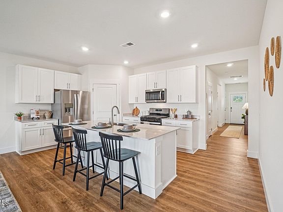 The Cali floorplan is available in the Keebler Meadows in Johnson City, TN. This single-story layout optimizes living space with an open concept kitchen overlooking the living area, dining room, and covered patio. Entertaining is a breeze, as this popular home features a spacious kitchen island and kitchen pantry for extra storage. The primary bedroom is located off the living space in the back of the home for privacy. The primary bedroom also includes a walk-in closet with a spacious bathroom. At the front of the home, there are two additional bedrooms and a second full bathroom. Across the hall is a fourth bedroom. This home features a space to fit all your needs.