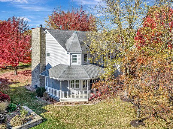 Just 50 minutes from Chicago, this stunning home combines space, style, and serenity in a highly desirable location. Nestled on a large, tree-filled lot, the 4-bedroom, 3.5-bath home boasts 2 fireplaces, an open floor plan with a formal dining area and a spacious living room featuring extra space perfect for a piano or cozy sitting area. The luxurious primary suite is a true retreat, complete with a fireplace, sitting area, dual walk-in closets, and a spa-like bath with a tiled walk-in shower. The kitchen and baths were thoughtfully updated in 2018, and fresh paint and gleaming hardwood floors enhance the home's inviting charm. The finished basement adds a bedroom, full bath, small kitchenette, and a spacious recreation room perfect for entertaining or hosting guests. Enjoy relaxing on the expansive covered front porch, the convenience of second-level laundry, and peace of mind with a newer HVAC system and water heater. Tons of storage plus an oversized 2 car garage, room for everyone and everything, this move-in ready home offers comfort, elegance, and a lifestyle you'll love!