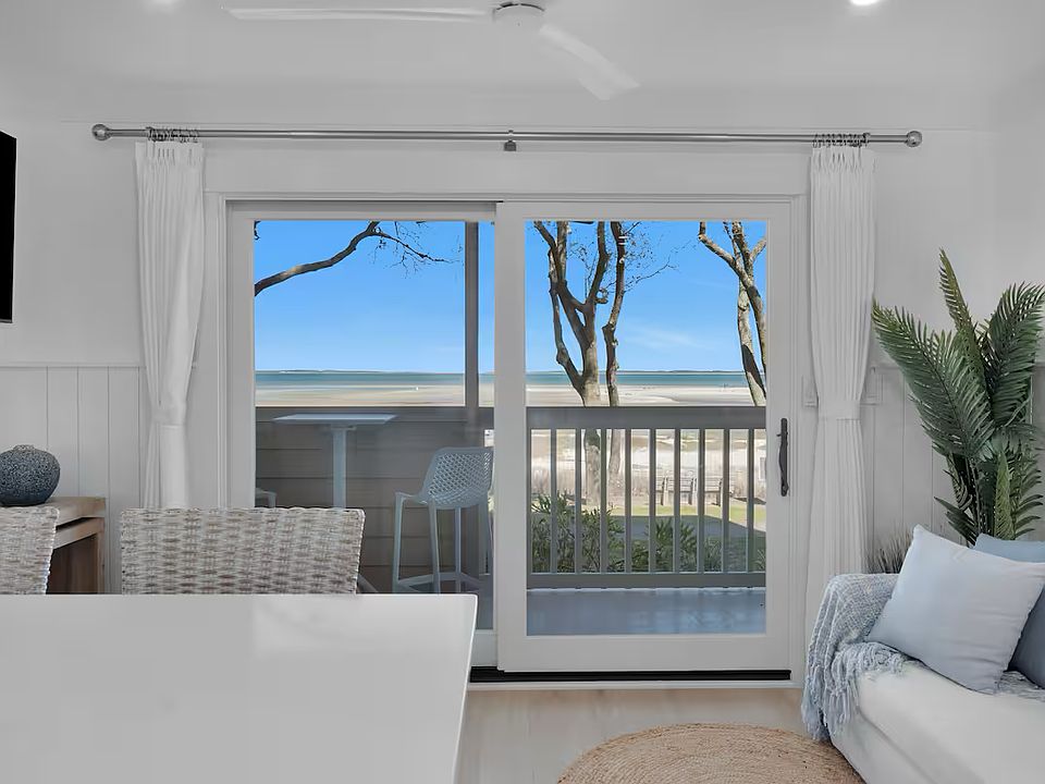 Completely renovated in 2025, this elegant first floor 1 Bed/1 Bath oceanfront Villa can sleep up to 4, and is located less than 100 yards from one of the most secluded and pristine beaches on Hilton Head Island. Directly overlooking the Atlantic Ocean and Port Royal Sound, catch breathtaking moonrises and sunrises from the private natural stone balcony, or from the full kitchen and living area through the brand new 8 foot wide sliding glass door.