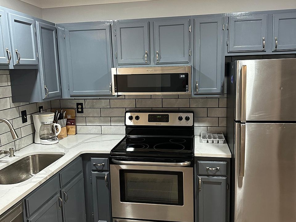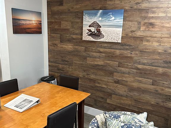 2-bedroom, 2-bathroom freshly remodeled unit with new Luxury Vinyl Plank flooring, new marble & remodeled kitchen, with white with gray vein marble counters, new backsplash and fresh paint & hardware. All new 5-panel interior doors have been updated and installed recently. Unit includes, washer/dryer in unit and dishwasher, stove and full size fridge. Unit also has wetbar/Kuerig bar, built-in wine cooler, deck overseeing pool, and 100 yards away from beach.