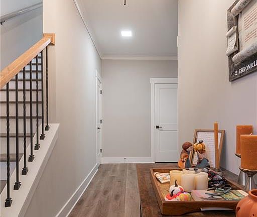 Modern appliancesTwo-car garageCrown moldingCovered front porchOpen-concept designBreakfast barTwo-story entrance foyer