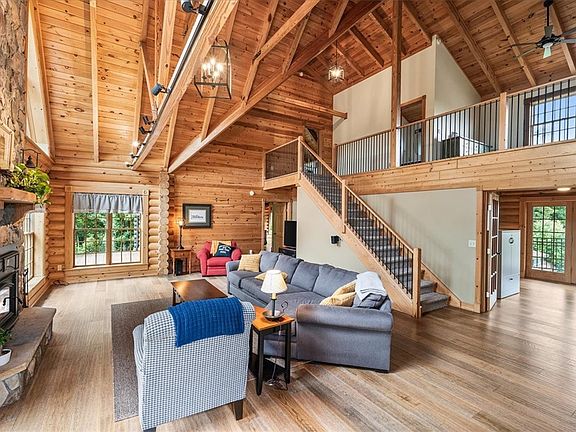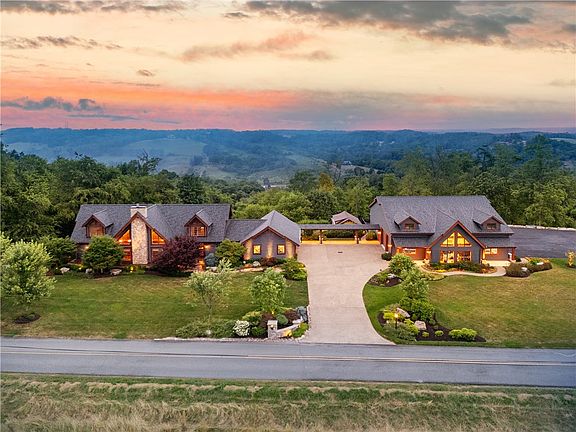 Escape to your private retreat w/this stunning log home on 13 wooded acres, with panoramic views & tranquility. Inside, the home boasts engineered hardwood flrs, beamed ceilings, & a great room w/a two-story stoned fireplace & wall of windows.Main floor includes primary bedroom suite w/ a renovated bath, a fully remodeled kitchen w/Granite counters & high-end appliances, & an office with deck access. The second floor offers two additional bedrooms, a loft, & a family bath. The fully finished lower level includes a 4th bedroom, full bath, & walk-out to the backyard paradise, featuring a plunge pool, paver patio, fire pit area,waterfall, & new composite decking.For the mechanical visionary the extraordinary garage accommodates 12 cars or 6 cars & 2 x 45' motor homes, featuring radiant floor heating, a 50 amp RV hook-up, 90 amp air compressor hook-up, office area, & LED lighting, & so much more.Located in North Strabane & near RT 19, I-79, I-70, schools, shopping, & entertainment.