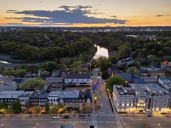 Offering over 5,300 sq ft above grade, with four car garage parking,this double-wide freehold townhouse blends the character of a New York brownstone with the convenience of Downtown Oakville living. Located just steps to the lake, library, restaurants, and shops, its a rare opportunity to enjoy space, privacy, and walkability in one of Oakvilles most sought-after neighbourhoods. Designed with thoughtful details throughout, the home features a front-facing courtyard and a large rear deck - perfect for quiet mornings or hosting family and friends. Inside, the living spaces are warm and welcoming, with a mix of exposed brick, antique accents, and architectural ceiling details that lend personality to the space. The ground floor level is ideal for both everyday living and entertaining, while the commercial-grade elevator provides access to all levels with ease. On the ground floor, you'll find three bedrooms, each with its own ensuite, offering comfort and privacy for family or guests. The main living level is bright and spacious, with natural light streaming in from windows on three sides. A large family room flows into the open-concept kitchen, where a generous island leads into a built-in dining table with seating for ten. A separate living room at the front of the home overlooks the private courtyard - a great spot for morning coffee. A powder room completes this level. The top floor is dedicated to the primary suite, featuring two walk-in closets, a six-piece ensuite bath, and a separate office or reading room - a quiet retreat within the home. Lower level, with 1,796 square feet, includes a recreation room, indoor swim spa, and a 1,000+ bottle wine cellar - offering a mix of leisure and functionality. With 3 full laundry stations (one on each floor) and 4 garage parking spots, this home is designed for everyday living. A unique opportunity for those looking for generous space, privacy, and a walkable lifestyle - all within a virtually maintenance free setting.
