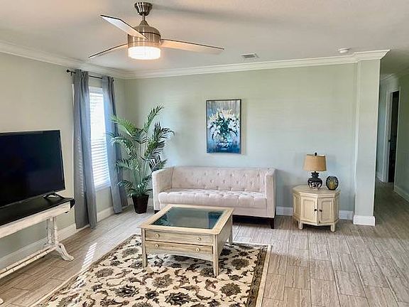 3 BEDROOM 2 BATH WITH BEAUTIFULLY EQUIPPED KITCHEN WITH STAINLESS STEEL APPLIANCES, A HUGH KITCHEN ISLAND AND FARMHOUSE SINK. LARGE WALK-IN TILED RAINFOREST SHOWER IN MAIN. UPGRADED LIGHTING THROUGHOUT AND CEILING FANS IN LIVING ROOM, AND ALL BEDROOMS. LARGE DINING ROOM WITH WINDOW SEAT BIG ENOUGH FOR THAT THANKSGIVING DINNER WITH FAMILY. SEPARATE LAUNDRY WITH LARGE UTILITY CLOSET. LOVELY COVERED PORCH, CARPORT AND ATTACHED STORAGE/WORK SHED. FINISHED DRYWALL, WITH CROWN MOLDING. UPSCALE 55+ COMMUNITY WITH HEATED POOL, BOAT MARINA ON CANAL LEADING TO THE ST JOHNS RIVER. OUR CLUBHOUSE IS GREAT FOR COMMUNITY FUNCTIONS, WITH A LENDING LIBRARY.