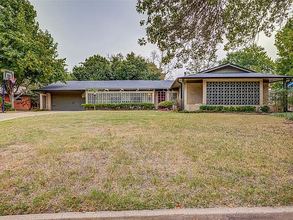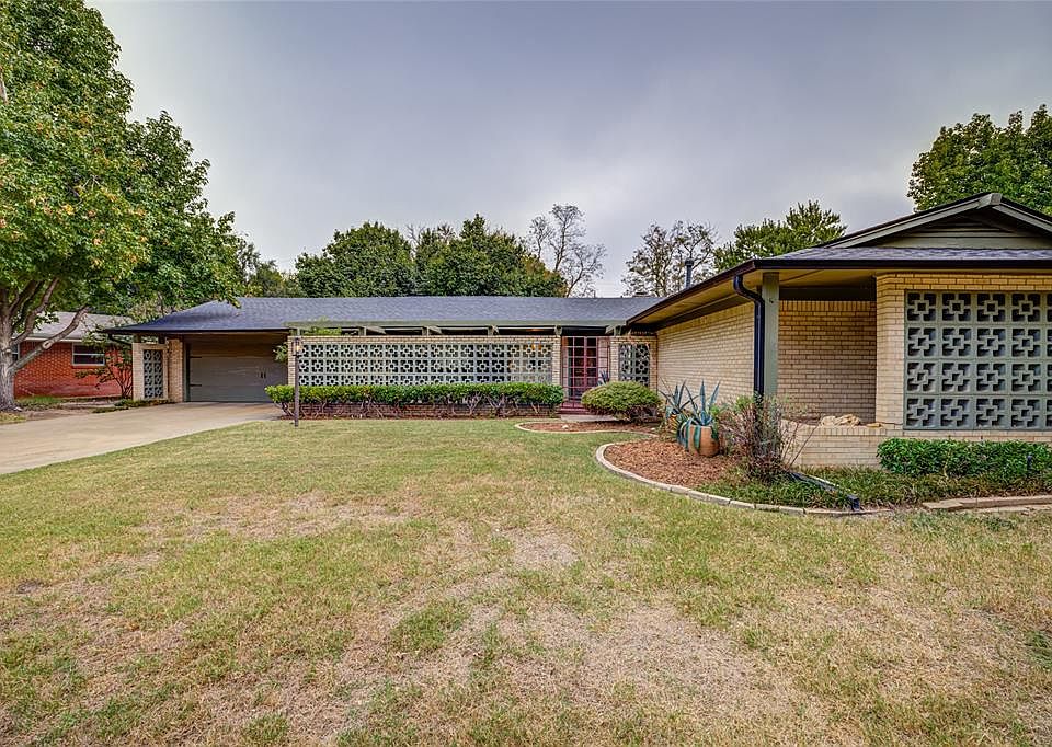 Sprawling Mid Century Ranch Style home located in Central Norman! Beautiful mature trees and landscaping line this picturesque street. You will love the updates. Kitchen cabinets all replaced, huge farm style sink, Quartz countertops and herringbone backsplash sets this kitchen off to perfection. Lazy susan in the corner along with rolls outs below. 5 burner gas cooktop, large oven and warming drawer for the chef in the house. Island has a breakfast bar along with hidden spots for trash and recycling. Large pantry and great utility room. Lots of countertop space for a cool coffee bar, or great for serving at holidays or fall football game parties. Tons of can lights throughout. All interior doors were replaced with alder wood. Circle front entry gives this home so much character. Large picture windows in front overlook the perfect area for a front patio. Large primary bedroom with french doors to outside with Southern exposure. Secondary bedrooms are large with a connecting bath. Large cedar lined closet in hallway. Hand scraped wood floors give a warm touch. Separate study with outside entrance is perfect for a small den, workout spot, great office, or reading room. Stone fireplace with gas logs is so cozy for those fall and winter days. Extra large patio in back with pergola. Wood fencing. Texture and paint have been updated. Nice thick baseboards are a plus. AC is just 2 years old. Roof is newer. 2 hot water heaters. Walk to elementary school. Easy access to OU, shopping, I-35, Downtown Norman Restaurants, Art galleries and quaint shops.