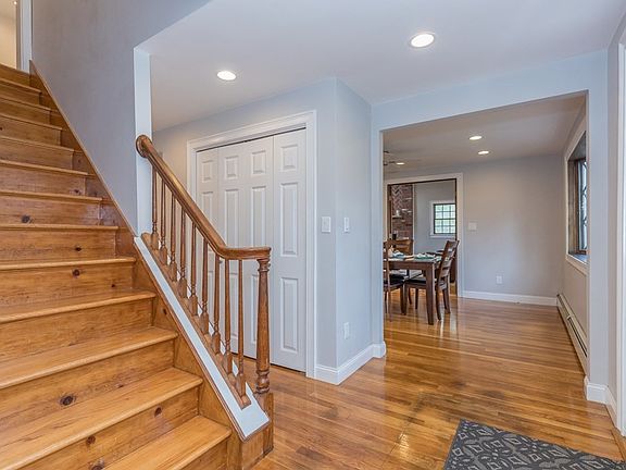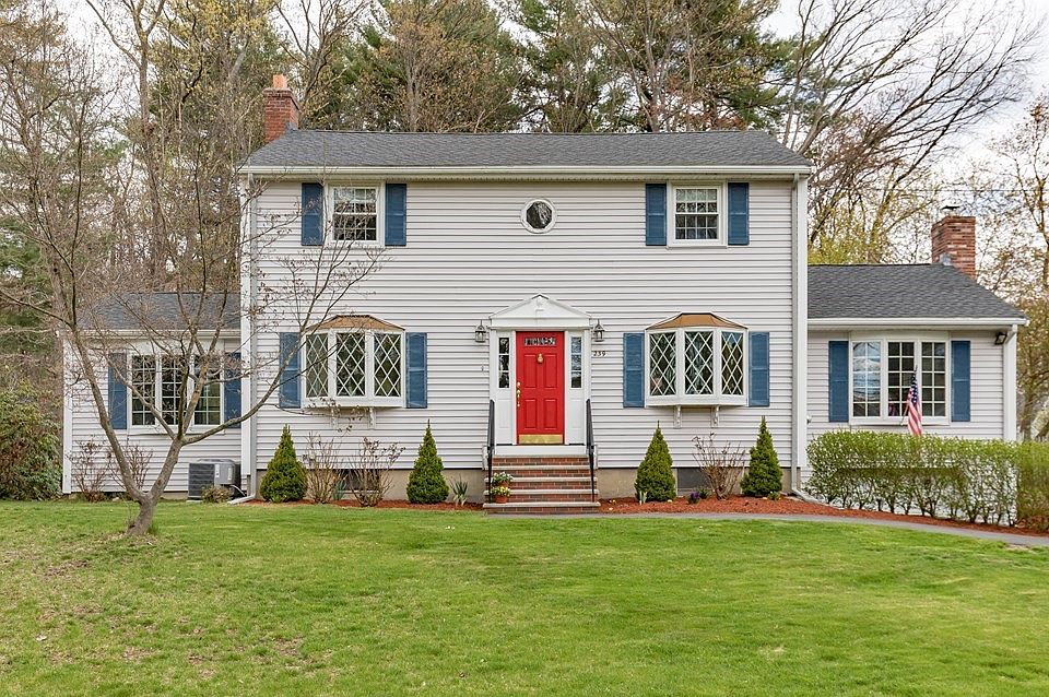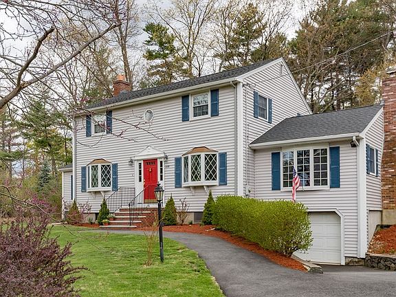 Welcome to this stunning remodeled Colonial in the heart of Fox Hill offering a gorgeous modern kitchen with island,stainless steel appliances, quartz counters and all new cabinets and tile floor. Living area is open to the diningroom with hard wood floors and a large bay window. This home is bright and sunny throughout with large windows! Open living room has fireplace and hardwood floors throught this home! 1st floor family room has beamed cathedral ceilings, French doors and a floor to ceiling brick fireplace with stove for extra heat! Upper level ofers 4 generous sized bedrooms and a very modern new full ceramic tiled bath with lovely appointments! Step outdoors to the large new deck overlooking the private, treed yard , great for entertaining! New driveway, deck FHW Buderus heating, C/A (2nd FL), deck and all new kitchen, baths and electric panel. easy access to school, highways & train. This home is ready for its new owners to move right in!