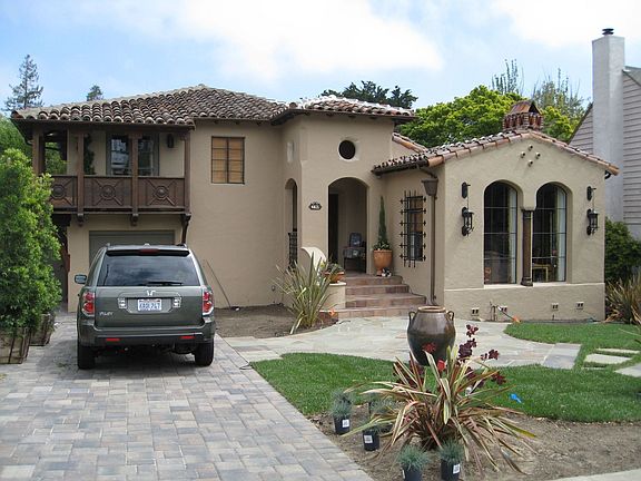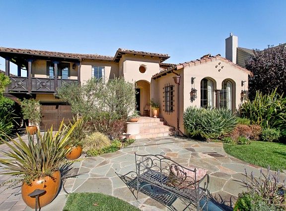 Dramatic 1930s Baywood Spanish Colonial Revival...Discover European quality combined with imaginative designer details and modern functionality. A soaring tower entry, romantic Juliet balcony and artistic landscaping promise delightful surprises within. This remodeled 4 bedroom, 3-1/2 bath residence with its richly stained dark hardwood floors, wrought-iron fixtures, terra cotta tile & custom hand-painted accents, is not only a coolly sophisticated and elegant retreat but also a warm & inviting family home
