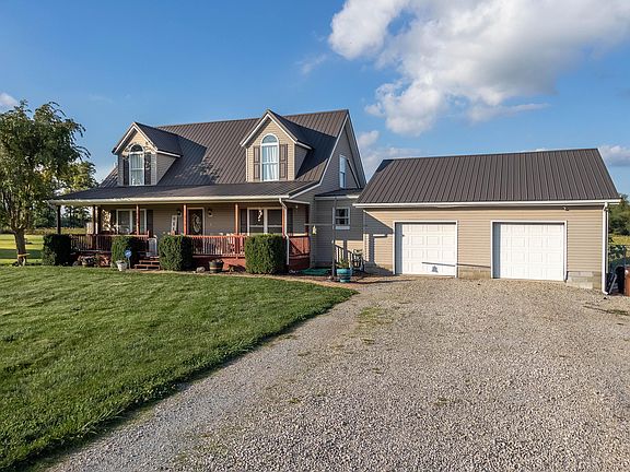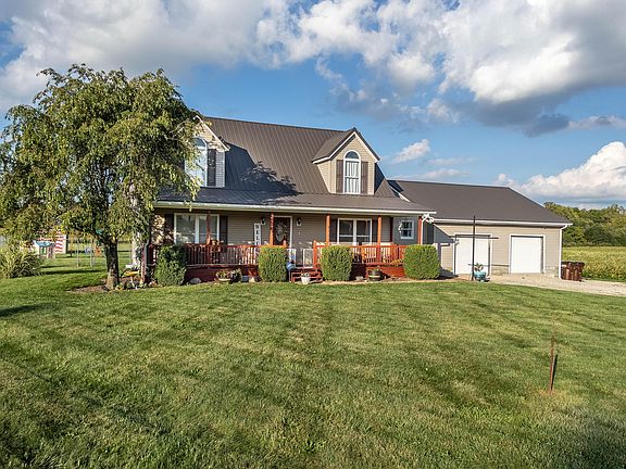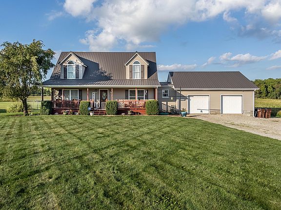 Be sure to check this one out! This well maintained, Cape Cod home has a lot to offer the new owners and is situated on 1.1 acres looking out over acres and acres of open land. The home sits back off the road and offers an oversized, fenced in, backyard. Once inside the tastefully decorated home, the large living room welcomes you. The living room has a large double, South facing window and opens into the kitchen and dining area. The kitchen has plenty of cabinet space, updated countertops and features a center island with room to have a couple of barstools for quick sit-down dinners. The dining area has sliding doors looking out into the supersized backyard. Off the kitchen/dining area, there is an amazing laundry room. The laundry room has extra kitchen cabinetry and counterspace and plenty of space of extra indoor storage. The main level features 2 bedrooms and a full bath. Up to the second level, you will find 2 additional, 'large' bedrooms and a second full bath. Both bathrooms are updated and both feature double sink vanities. There is still more! There is a full, semi-finished basement with a large family room, and a possible 4th/5th bedroom. The home keeps getting better with all the outside has to offer. The 38X8 covered front porch is the place to be on the upcoming, cooler Fall evenings and there is additional outdoor space in the back. There is a 2-car attached garage and a storage shed. This home has a lot of updates, including updated flooring, and is move in ready.