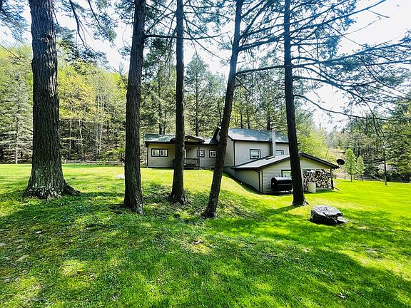Tranquil & peaceful environment that is perfect for those who love the great outdoors. Step inside this cozy home, with an eat-in kitchen, spacious living rm, 2 bdrms with good closet space, a full bath that is clean & neat. Family room in the basement w large windows w views of the mountains & creek. Laundry room is also in the basement, perfect for those w muddy boots from hunting & hiking. The outside space features a large covered from porch, a patio off the basement family rm & a back porch to watch the outdoor activities in the nice flat yard! The acre of land also provides plenty of room for gardening or expanding the property if desired. A garage/workshop will hold all your yard equipment, atvs & more. With the State forest lands right next door, you can enjoy hunting, hiking, and other outdoor activities just steps away from your front door. Whether you're looking for a year-round residence or a vacation home, this property is a piece of paradise!