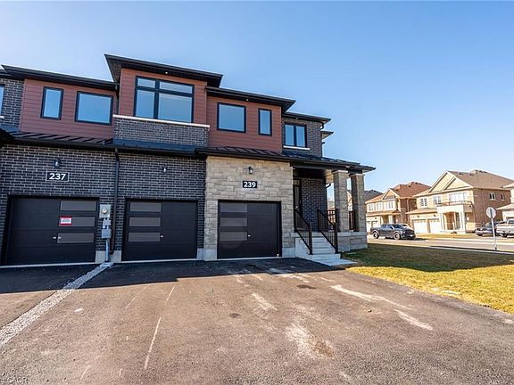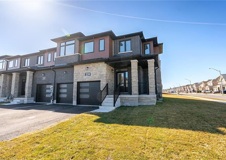 MOVE IN READY FREEHOLD END TOWNHOME WITH RARE DOUBLE CAR GARAGE! Introducing 239 Lormont Blvd on Stoney Creek Mountain, this rare floorplan is the only of its kind in the community making it a rare commodity. Boasting 2,345 sq. ft. this 4 bedroom, 3 bathroom end townhome offers elegance, space, and over $80K in premium upgrades. Situated on a large lot with a rare double-car garage, this home features an open-concept design, Luxury Vinyl Plank flooring throughout main floor, and a grand full oak staircase with custom stain. The gourmet kitchen showcases quartz countertops, matching quartz backsplash, breakfast bar, and upgraded cabinetry. The seamless flow into the sunlit living and dining areas is enhanced by a cozy gas fireplace. The luxurious primary bedroom features a walk-in closet and a spa- ike ensuite with a double vanity, full glass shower, and separate freestanding bathtub. Thoughtful additions like a mudroom, SS range hood fan, and SmartSuite Home Technology enhance modern convenience. With its prime access to local amenities and major highways, this home is a true showstopper. Some photos are virtually staged.