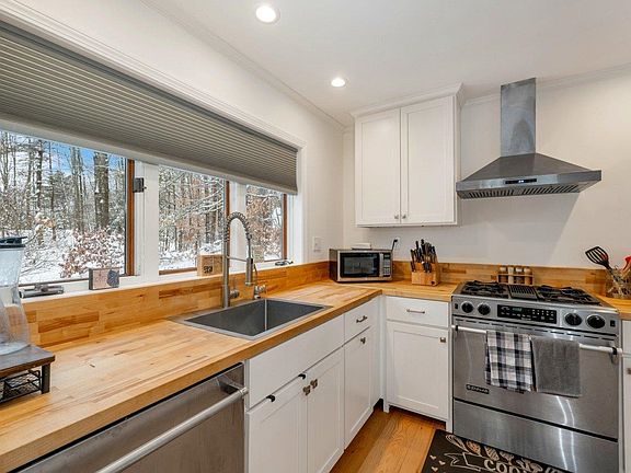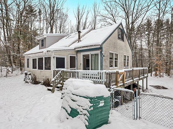 Lovely 3 Bedroom Cape with 24x30 detached garage with Upper-level storage. Set on 2.08 acres in Gilmanton. Open concept, Cathedral Ceiling living room. Stylishly modern kitchen features a BEAUTIFUL oversized granite topped center island, with storage below. Newer cabinetry, dovetailed drawers/soft close, Stainless-Steel appliances, and hickory wood flooring. Cathedral living room offers great natural light, brick hearth and Pellet stove. Roomy dining room offers red oak flooring. First floor bedroom, office and updated full bath. Upstairs features one bedroom with two new oversized skylights, and an additional bedroom. Also, a newly added 1/2 bath on the second level. Sliders to Deck off living room with enclosed porch on the back and fenced area for pets! Large, clean, dry basement provides laundry and ample storage. A Charming home offering modern amenities and cozy living! Subject to seller finding suitable housing. Seller is very actively looking.
