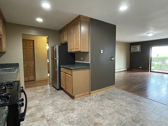 Spacious and remodeled condo in Chateau Mill!! Kitchen features oak cabinets, stainless steel appliances, ceramic floors, eating area. Unit features wood laminate floors & wood trim, 6 panel doors. Large master bedroom with walk-in closet. Tastefully upgraded bathroom with granite vanity top~ ceramic tiled shower Patio door and bedroom window are newer! 2nd floor laundry with an abundance of machines. Underground parking in an elevator equipped building. Unit is across from in-ground pool with club house. Rent includes heat, gas, water, pool!! This is a must see!! Owner is an Illinois Licensed Real Estate Broker.