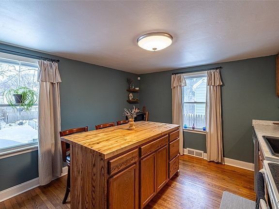 The main level features a bright and welcoming living room with gleaming hardwood floors, a beautifully updated kitchen complete with a deep single-basin sink, subway tile backsplash, a spacious pantry cupboard, and a stunning butcher block island. Freshly painted throughout, this floor also includes a fully renovated bathroom and a comfortable bedroom. The home also boasts updated plumbing and electrical for added peace of mind.