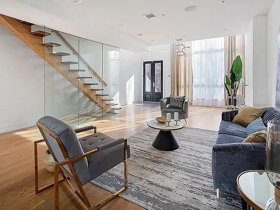 This one of a kind! gorgeous brand-new townhouse is distinctive in its contemporary Brooklyn design. Nestled along one of the best preserved, most beautifully tree-lined streets in Bedford Stuyvesant, this home boasts a striking exterior red brick facade; expansive 20-ft tall custom-designed, energy-efficient windows; and gated entryway and front yard patio. Inside, the home contains an assortment of impressive luxury finishes and amenities along with approximately 2,600sqft. The residence's first floor features a sweeping floor-through, open concept, connected living and dining room. This space is enhanced with a suite of luxury features including tasteful lighting fixtures; smart-home connectivity; integrated wireless speakers; expansive high ceilings; over sized front windows; and sleek hardwood flooring throughout.