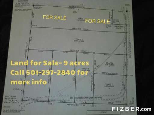 9 acres near Brewer Lake, NW of Conway, Arkansas......partially wooded, water, electricity .....great hunting and fishing....off I-40 West and Hwy 92 North or Hwy 9 North....easy commute to Conway ....Owner financing with small down....call 501-297-2840 04/29/14
