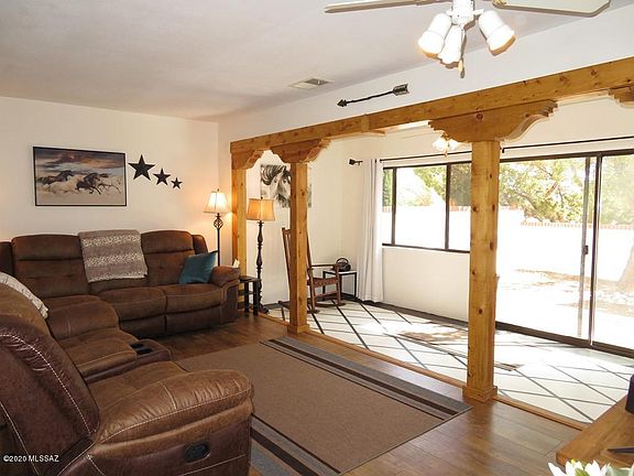 Renovated townhouse. End unit. Lovely courtyards both front and back. View of the Stronghold. Large carport. Arizona Room. Good square footage. Walk-In Closet. Storage shed. Move in ready. Turn-key with FULL PRICE CONTRACT. Includes furniture and dishes and all appliances plus the washer and dryer and patio chairs and interior decor. Home has central electric heat and AC Via Heat pump. All electric home. Quick close possible. All the work has been done for you! This is a must see home in town Sunsites. No HOA fees.