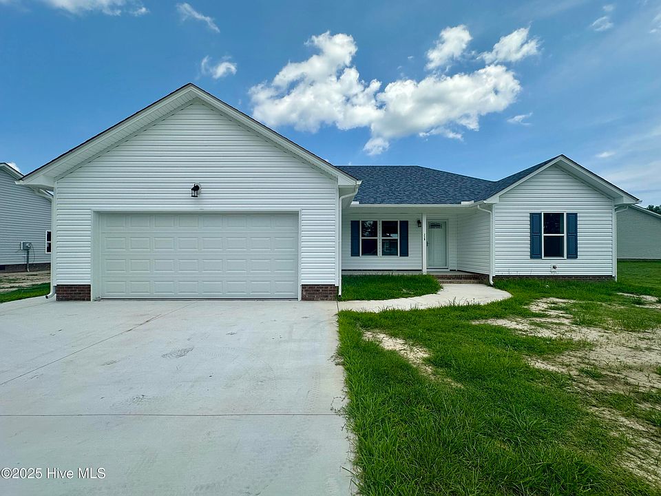 NEW CONSTRUCTION READY BEFORE THE END OF SUMMER 2025! Located in the desirable Hunters Lake community of Elizabeth City, NC, this brand-new 3-bedroom, 2-bath home is set for completion on July 31st! The open-concept layout features a modern kitchen with granite countertops, a spacious island, and ample cabinetry. LVP flooring runs throughout the main living areas, while plush carpet adds comfort to the bedrooms. The primary suite offers a private bath, and two additional bedrooms provide flexibility. Enjoy outdoor living on the patio and the convenience of an attached 2-car garage. This home includes a one-year builder warranty, plus a 10-year manufacturer's warranty on the HVAC system for added peace of mind. Just minutes from shopping and dining, this home is perfect for modern living. Secure it now and move in this summer! Contact us today for details on the builder's preferred lender. $180 special assessment is charged annually with tax bill for solid waste and storm water fees.