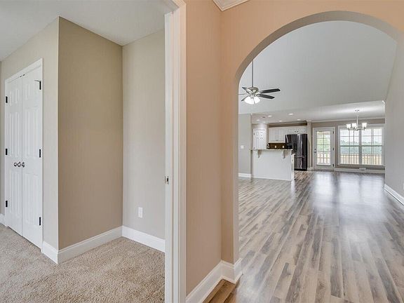 The kitchen is a cook's dream, with ample counter and cabinet space, a large island, and stainless steel appliances. The kitchen is open to the living space, perfect for entertaining. LVP floors throughout the main living space.