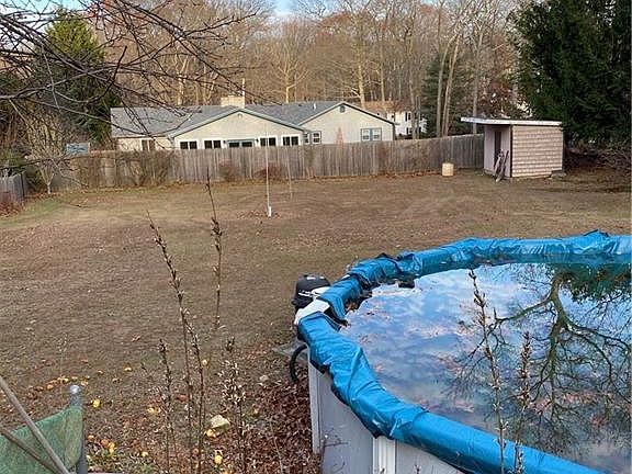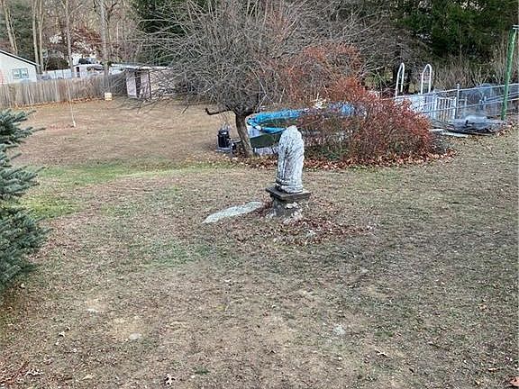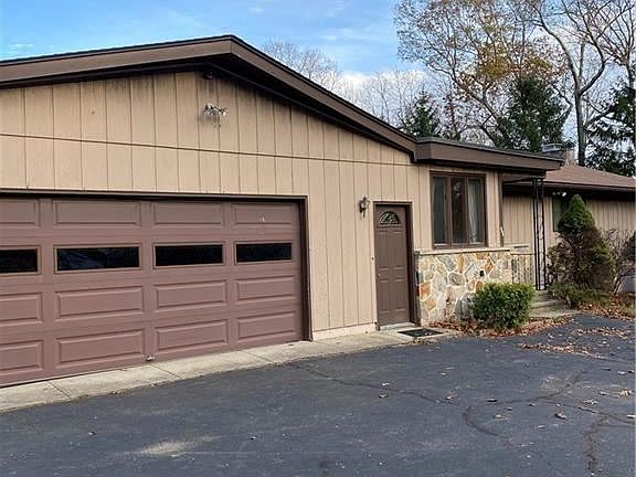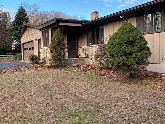 Custom one owner 3 bed ranch with open floor plan. Living room opens to dining room with built in china hutch. Oak hardwood floors throughout. Granite counters in alley style kitchen with older style cherry wood cabinets. Large laundry area with plenty of storage on main level. Generous master bed with tile bath and built in vanity. Exterior is cedar siding and Connecticut stone front. Basement has open floor plan due to steel beam construction providing large 25x40 great room and stone front fireplace. Summer kitchen and extra guest quarter in lower level with access to summer porch and sitting area. Totally fenced 3/4 acre yard with above 15x25 oval above ground pool and fruit and pine trees for privacy. 2 car garage is plastered and heated with access to attic area. House is of solid construction however needs updating. Fabulous location to highways and all amenities.