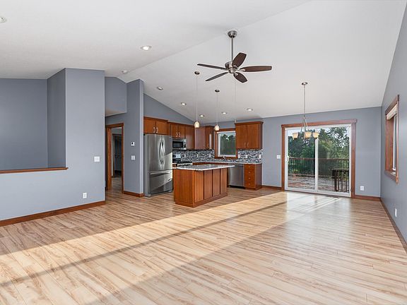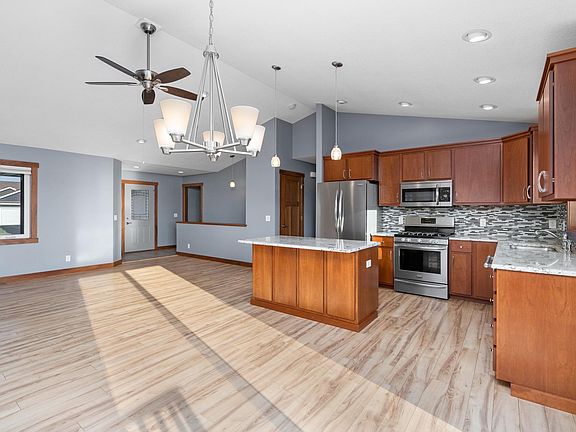 You must see this gorgeous, 4 bedroom, 3 bathroom home located in the Whispering Pines development. The meticulously kept lawn and landscaping along with a large, covered front porch greets you upon arrival. Welcoming you to the main level offers a beautiful kitchen with stainless appliances, tile back splash, natural oak flooring throughout, the living room is large and makes it easy to entertain for guests with the open concept. Two bedrooms on the main floor, one of which being the master with a large walk-in closet and a private master bath. The lower level features a spacious family room including a bonus room for either an office, sewing room, or turn into a bar by opening up the one wall. Two additional good sized bedrooms plus a full bathroom in the basement. The large deck can be accessed through the walkout or from the dining room slider. The backyard boasts a charming patio area nestled under the deck and surrounded by well kept landscaping. This home will not last.