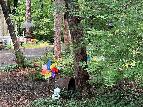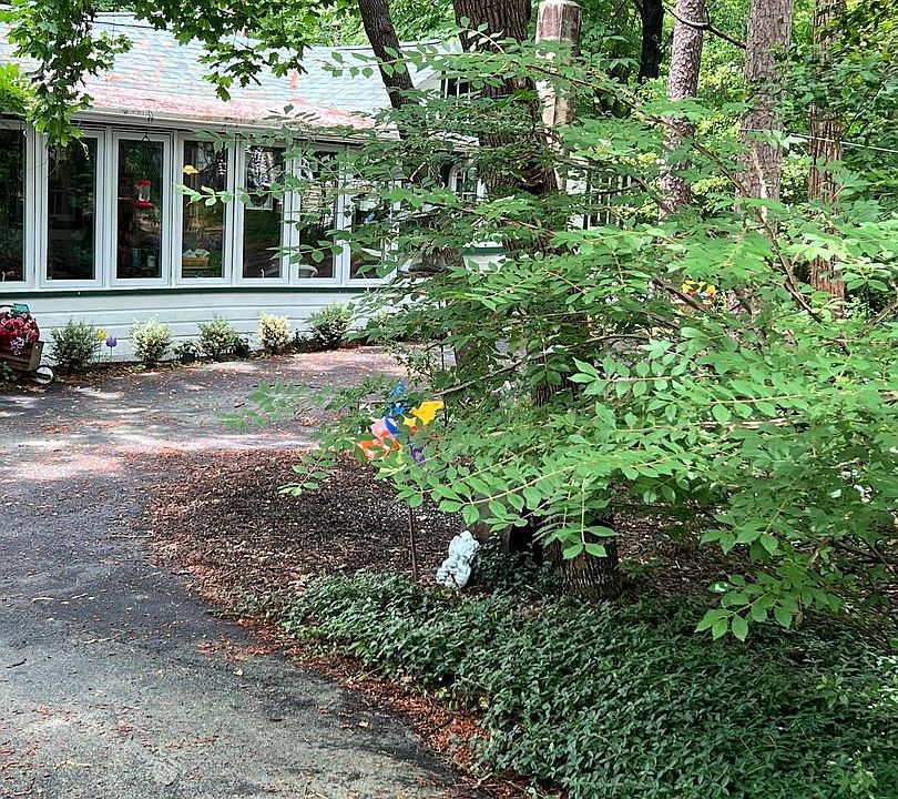 This 2 bedroom, Two full bath Cottage is nestled Off the Road and is in tune with Nature. It is almost like your own private retreat. There are two bubbling ponds. One is in the front and the other is in the back where you can sit on the deck and listen to the sounds of nature. There are three ways you can come in off the road with the circular paved driveway. On the side front there is a extra large carport 17' x 19' with a asphalt floor. There is another covered structure where you can protect other equipment.You can get to the backyard and go up to the deck. Part of the deck can be covered and there are places to hang plants.There is a workshop 12"x16' with double doors and a loft for more storage. 220 electric line available. Lets take a tour of the inside. When you come to the house the front yard pond is to your right, with it's own resident frog. There are also bird and squirrel feeders. You would make your entrance way into the glass enclosed porch which is 8'x20'. It has vinyl (floating) floor and crank-out windows. there is a window between the porch and kitchen. Living Room has a bay window which looks out to the deck and it has a open beam ceiling. There is a walk in storage area off the living room. The dining room has a Anderson picture window where you can look out to the front yard and it has a stone fireplace with wood burning wood stove insert ("As Is"). The, "This Ends Up" dining room table and chairs stay with the home. Corner wood cabin in dining room also stays. Vinyl flooring in living room and dining room is covered with area rug. There are Wagon Wheel light fixtures in both Living Room and Dining Room. Gallery Kitchen has granite counter. Regular free standing Range and an over the range convection oven. Large Bedroom (13 x 17) with plenty of closet space. Main bathroom with walk in shower and skylight. 2nd Bedroom is a Suite with it's own living area which featured a free standing gas stove, possible kitchenette with no sink hookup, wall shelving, has door leading to deck on one side more storage or porch on the other side of this room. The adjoining bedroom (12 x 17) carpet was replaced 5 years ago. It has it's own walk in shower. Off this bedroom is a sun room which leads to the back deck. Green wicker deck furniture to stay. The Refrigerator "As Is". Prior oil tank has been abandoned in place and seller has all paperwork. Central Air and Gas Heater replaced in 2020. Roof 1 year old. Electric Hot Water heater also approximate 1 year old. Basement has concrete floor with workshop area. The only thing this Cozy Cottage needs is You.
