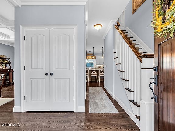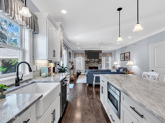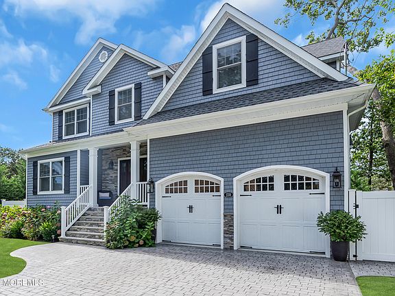 Exceptional offering of a 2 building compound on an oversized corner property on one of Point Pleasant's most charming streets. Gorgeous builder's own custom 3 yr old home PLUS A DETACHED GARAGE WITH ADDITIONAL FINISHED SPACE ABOVE. The main home is an immaculate, meticulous 4BR, 2.5BA custom colonial w/ full, finished basement & 2-car garage. Interior features include 9ft ceilings on the 1st floor, coffered ceilings in the living rm & dining rm, family room w/ gas fireplace, and a stunning kitchen w/ center island, granite counters & stainless appliances. The gorgeous primary BR suite has a tray ceiling, attached sitting area/bonus space and luxurious bath. Three additional bedrooms & a full bath on the 2nd floor as well as laundry rm. Beautiful full, finished basement (approx 1,100sf) features high ceilings PLUS storage space. The detached garage is enormous, approx 1200sf w/ 12 ft+. ceilings and a half bath. The second floor offers approx 1100 total sf and is currently finished with a wet bar, full bath, recreation room and a study. There is additional unfinished space and room for expansion. Detached garage has it's own oversized driveway separate from the main house. The main home and garage are joined by a beautiful stamped concrete walkway with a covered breezeway. The professionally landscaped, fully fenced yard offers the ultimate in privacy. This distinctive property offers the finest features and is truly in move in condition. The possibilities for this stunning estate are endless! Perfect for multi-generational living, home office, car enthusiasts, etc., etc. Located close to Riverfront Park for kayak or paddleboard launching, fishing, community activities and less than 2 miles to ocean beaches. Not in a flood zone.