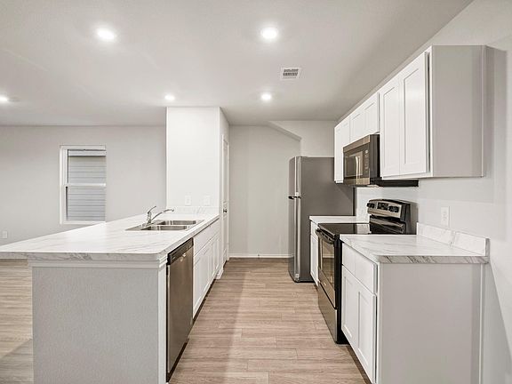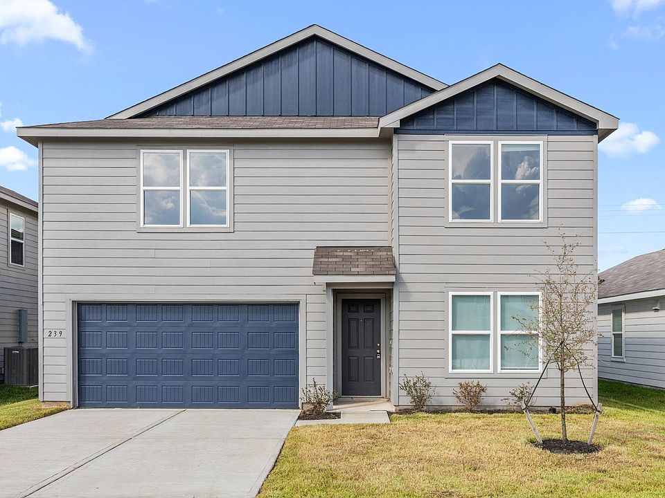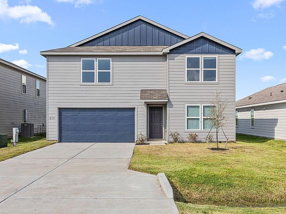 Welcome to this spacious new home in the Santa Fe community of Cleveland, TX. Built in 2024, this two-story home has never been occupied or lived in and offers an open-concept layout featuring luxury vinyl plank flooring, a modern kitchen with quartz countertops, stainless steel appliances, and a large island. Additional highlights include a dedicated office, upstairs loft, and spacious rooms. The oversized backyard backs to open land with no rear neighbors, offering added privacy and room to entertain. This home is the perfect blend of comfort, space, and value.