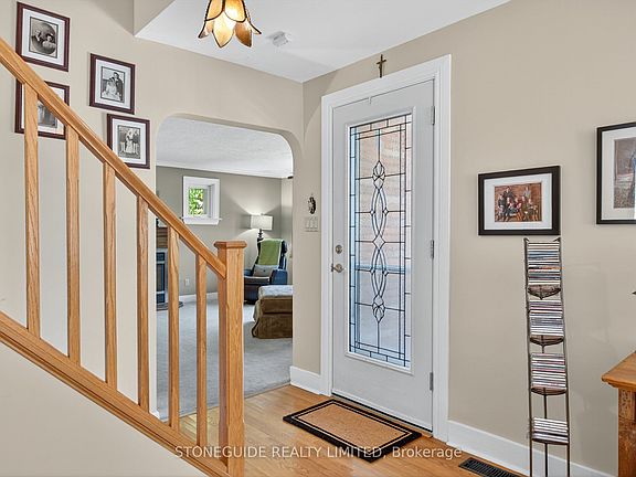 Here's a rare find. An East City charmer on a well treed 88' x 178' private lot. Offering move in convenience, this 3 bedroom home offers immediate occupancy. The main level offers an open concept feel with spacious eat in kitchen with work island, formal LR with cozy gas fireplace (hardwood under carpet) a newly updated 3 pc bath with laundry and third bedroom now used as a den. 2 large bedrooms on upper level, both with hardwood under carpet and a 3 pc bath with air message soaker tub. Primary enjoys a walk in closet and the second bedroom offers an unfinished bonus room above the living room. Lower level offers above grade windows in the rec room complete with gas woodstove, a 4th bedroom, 3 pc bathroom and walk up from the laundry. The detached garage was built in 2001. Some of the many updates include shingles '18, MF bath in '23 as well as windows and eave troughs. The wrap around porch offers a place to unwind and enjoy the community feel of East City.