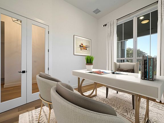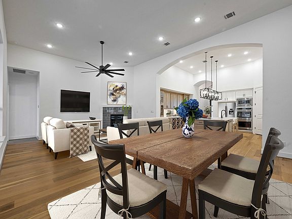 MLS# 1306475 - Built by Highland Homes - Ready Now! ~ This ideal 1-story plan focuses on what's most popular. Open living space with secluded study, entertainment room and bedrooms at different wings of the home. Not to miss are the luxurious finish outs and designer touches everywhere you look. Some of the features include wood floors throughout, Quartz countertops and black lighting fixtures and hardware. Garage has a 5' side bump out perfect for extra storage. Lot with trees backing into serene surroundings. Nature at its best.
