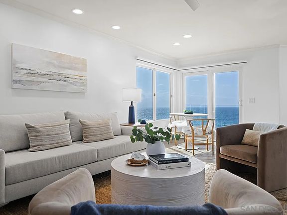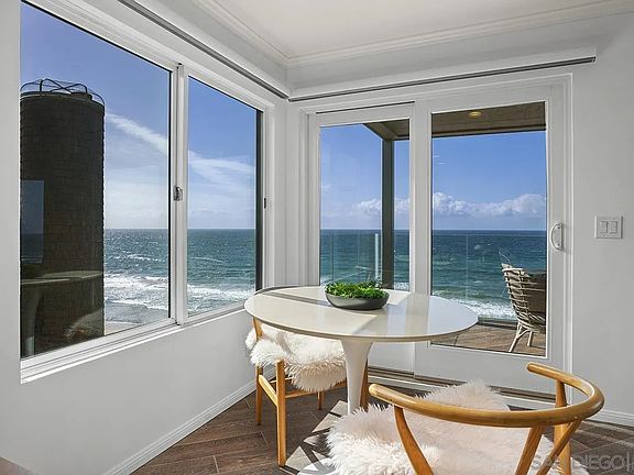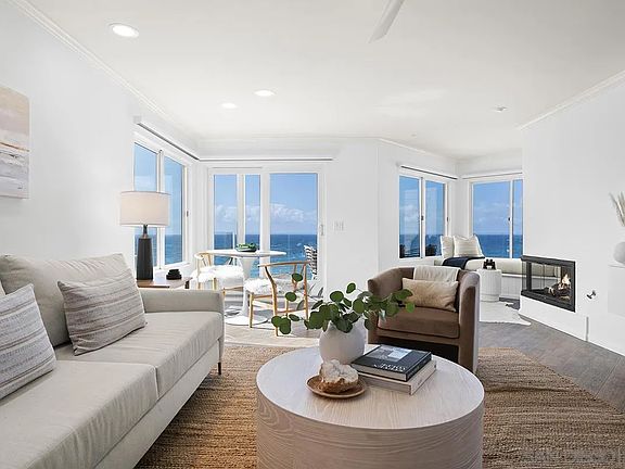 Ocean Front living at it's Finest! Endless panoramic Views! This beautifully remodeled oceanfront property offers the ultimate coastal retreat in Solana Beach. Thoughtfully designed and impeccably furnished, this stunning end-unit boasts unobstructed ocean views from a bright, open living space that seamlessly extends to a covered balcony. The all new European-style kitchen features high-end appliances, quartz countertops and a sleek wet bar with beverage fridge. Retreat to the luxurious primary suite where you can fall asleep and wake to the sound of the waves. Indulge in a spa-like experience with steam shower, jetted tub, motorized shades & more. Located in the exclusive Upscale Surfsong complex with ocean front pool, spa, Elevator access, clubhouse, tennis, pickle ball and gym. Walk to Fletcher Cove Beach Access & park, restaurants, cafes, fitness, train station, farmers market & Cedros Design District. Available long term or short term. Concierge Service & easy move in - Elevator access from 2 garage parking spaces, code entry lock, fully furnished & equipped, gated guest parking with EV chargers, housekeeping available, utilities, wifi connected and ready to enjoy. Lease includes Ting high speed fiber optic wifi, maintenance & repairs.